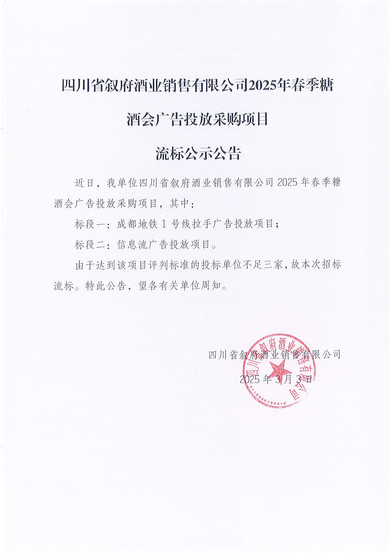 四川省宜宾市叙府酒业股份有限公司李庄基地外接电竞争谈判采购项目流标公示公告