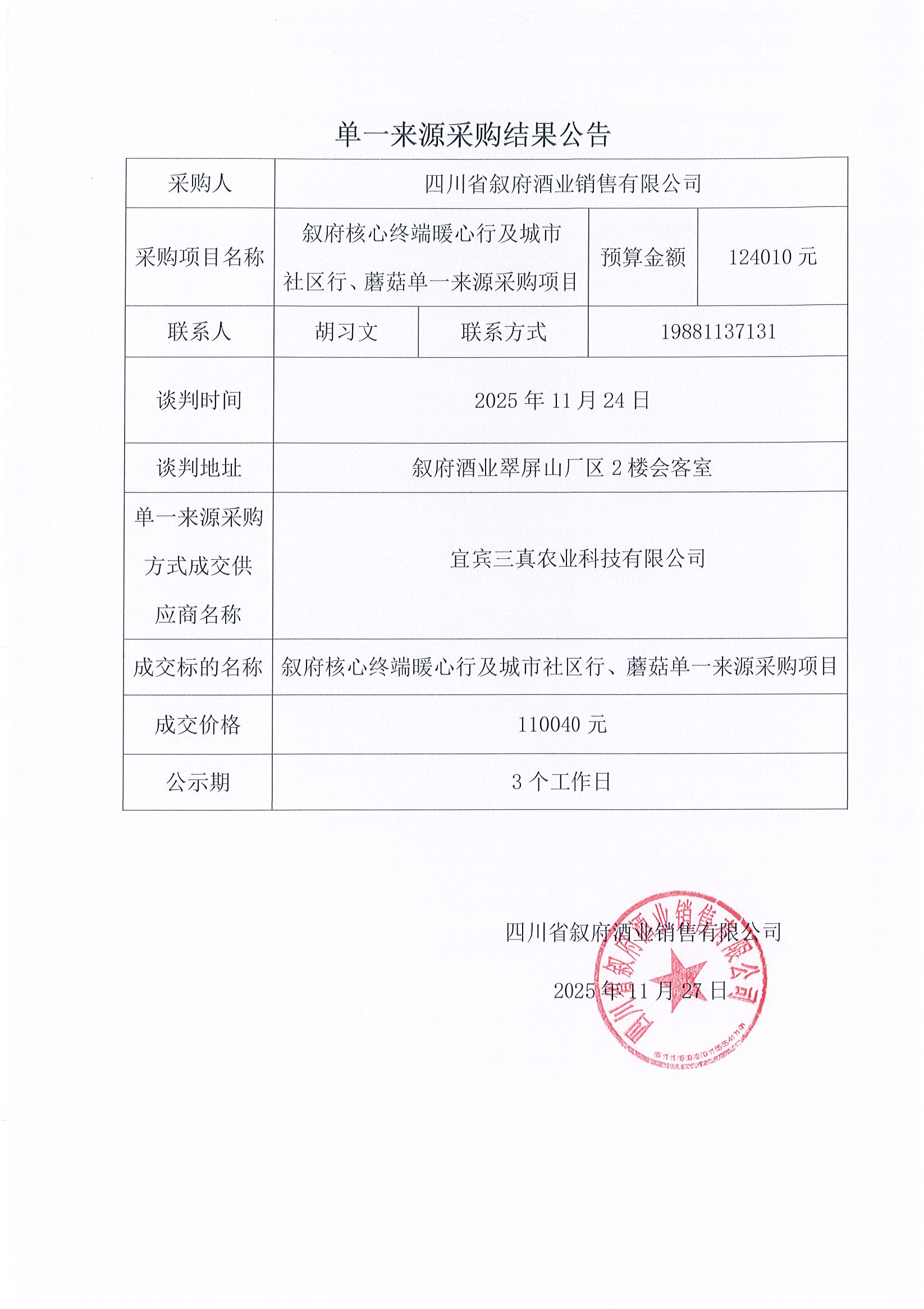 四川省宜宾市叙府数字科技有限公司2025年经销商旅游招标项目比选结果公示