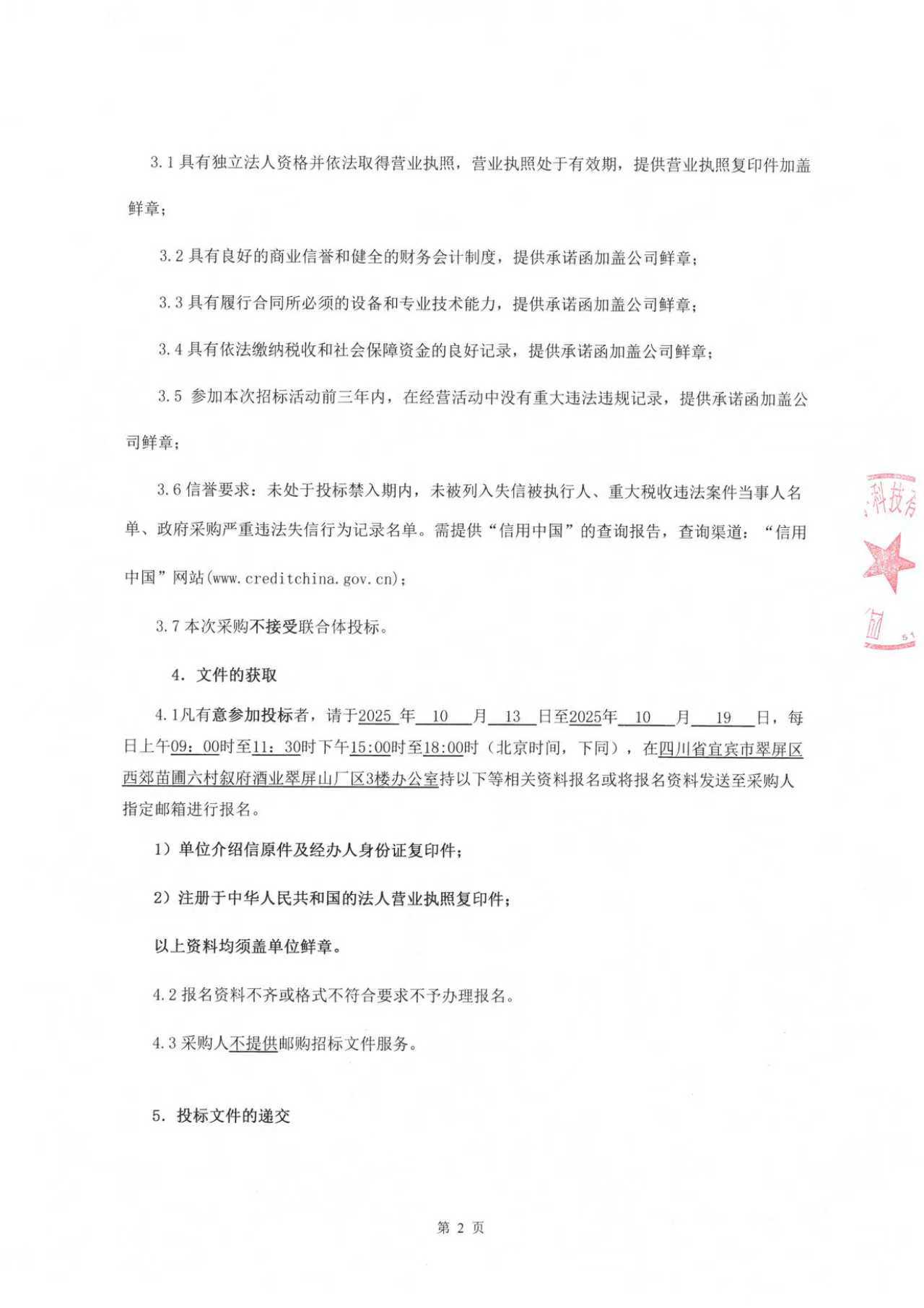 (第二次)四川省宜宾市叙府酒业股份有限公司包装中心烘干机采购项目比选公示公告
