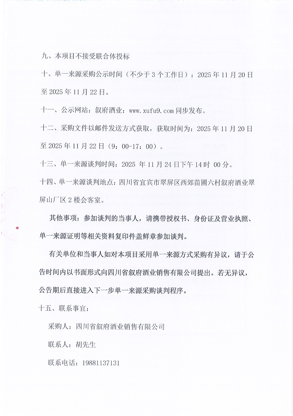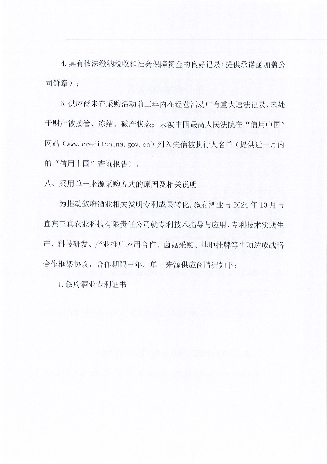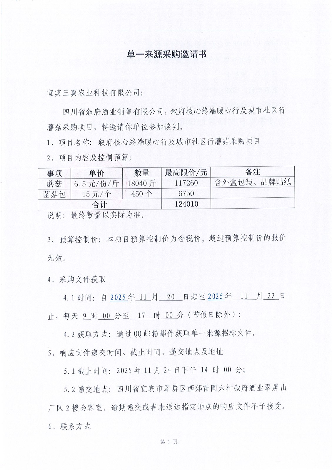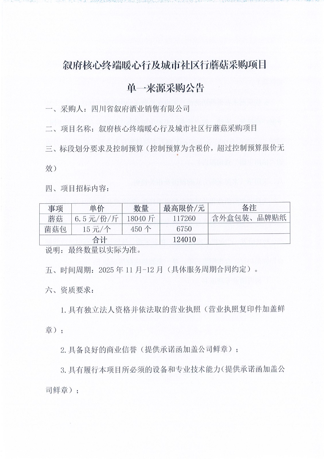 四川省叙府酒业销售有限公司叙府核心终端暖心行及城市社区行、蘑菇单一来源采购项目中标结果公示公告