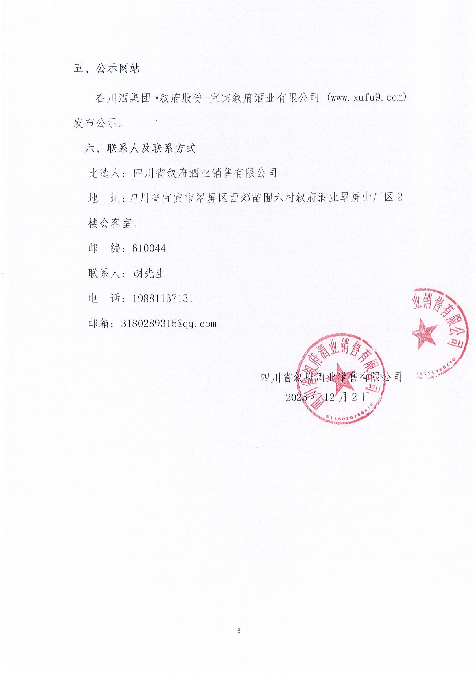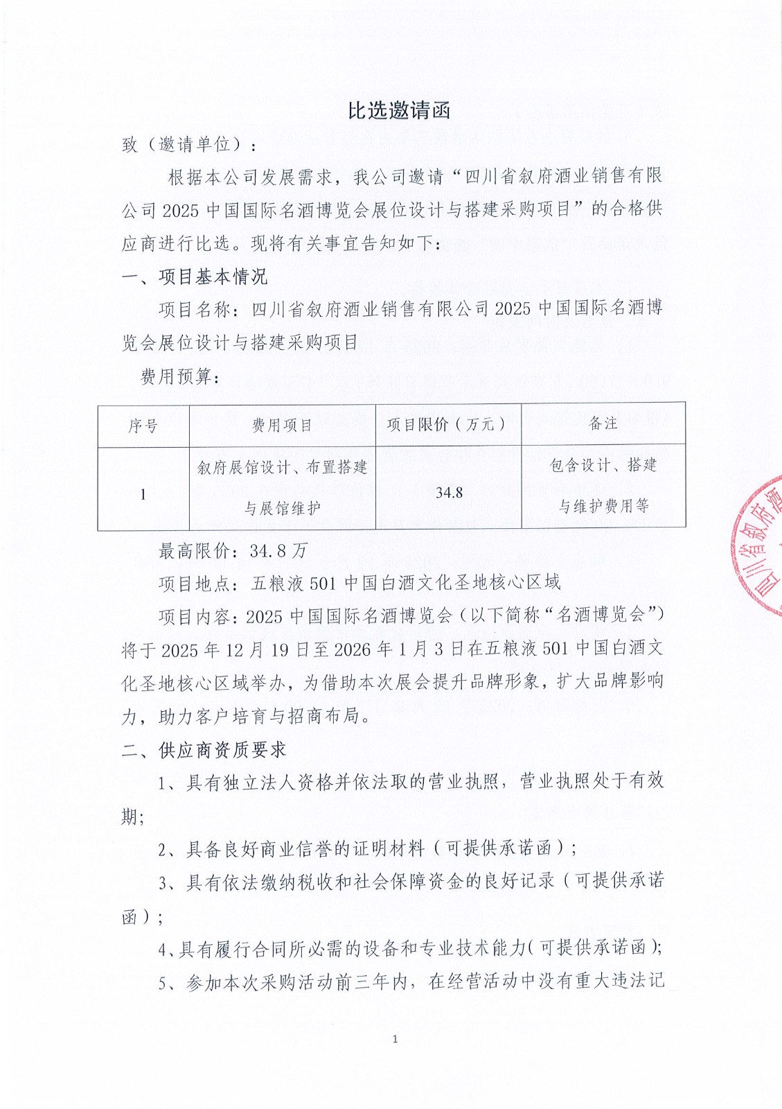 四川省宜宾市叙府酒业股份有限公司李庄基地外接电竞争谈判采购项目
