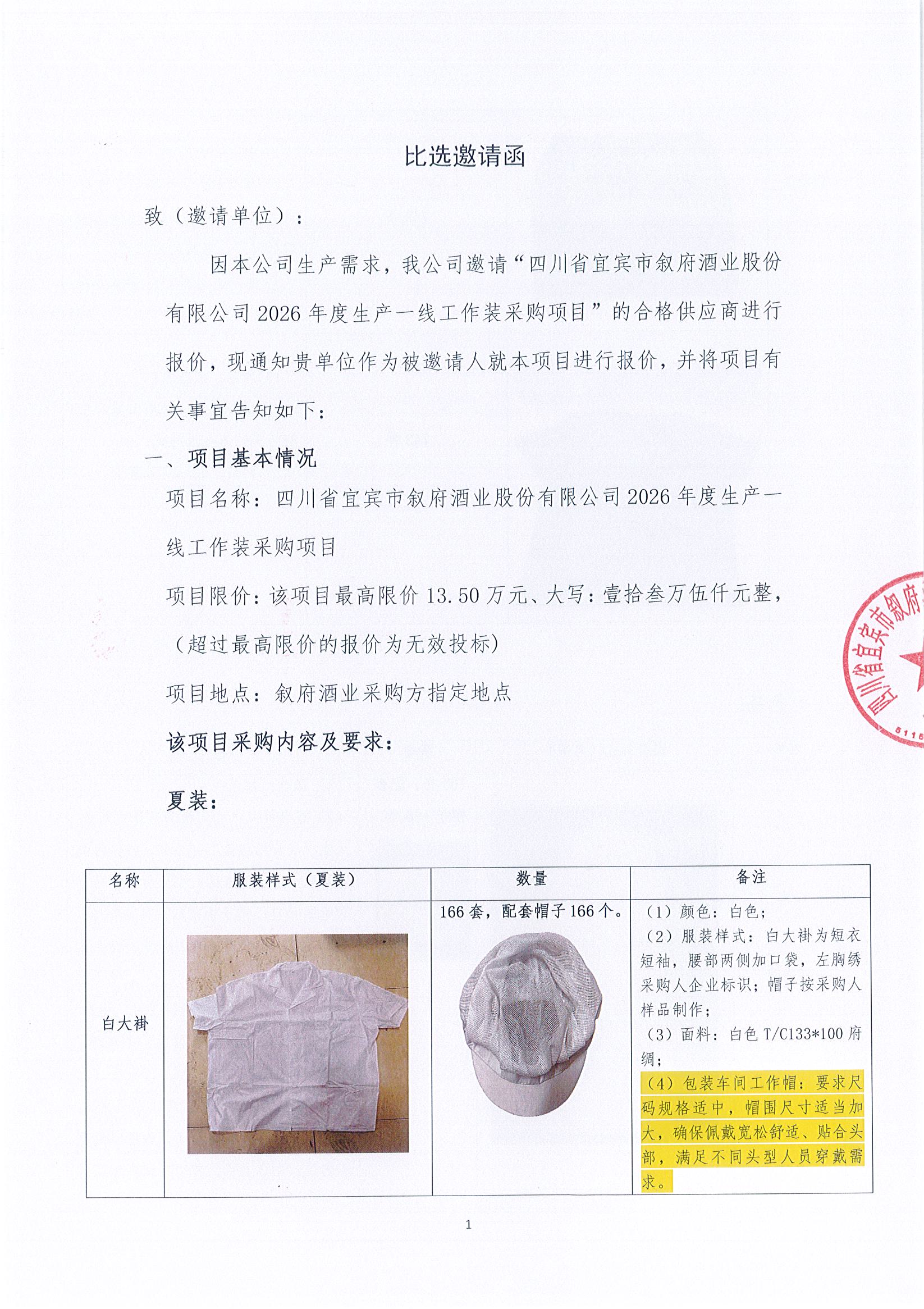 四川省宜宾市叙府酒业股份有限公司2026年度环境自行监测采购项目比选招标公示公告