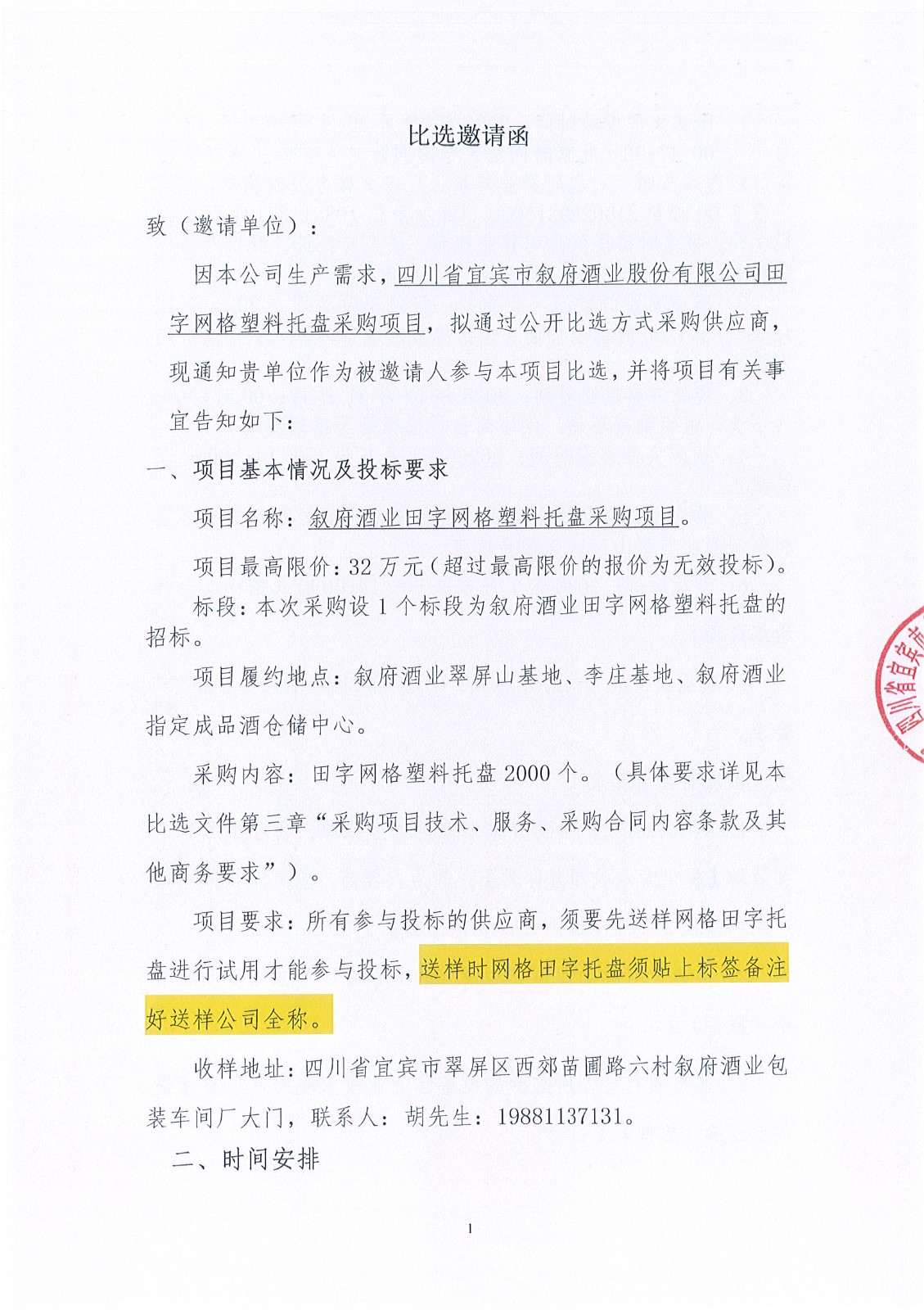 四川省宜宾市叙府酒业股份有限公司电动四轮车采购项目比选招标公告