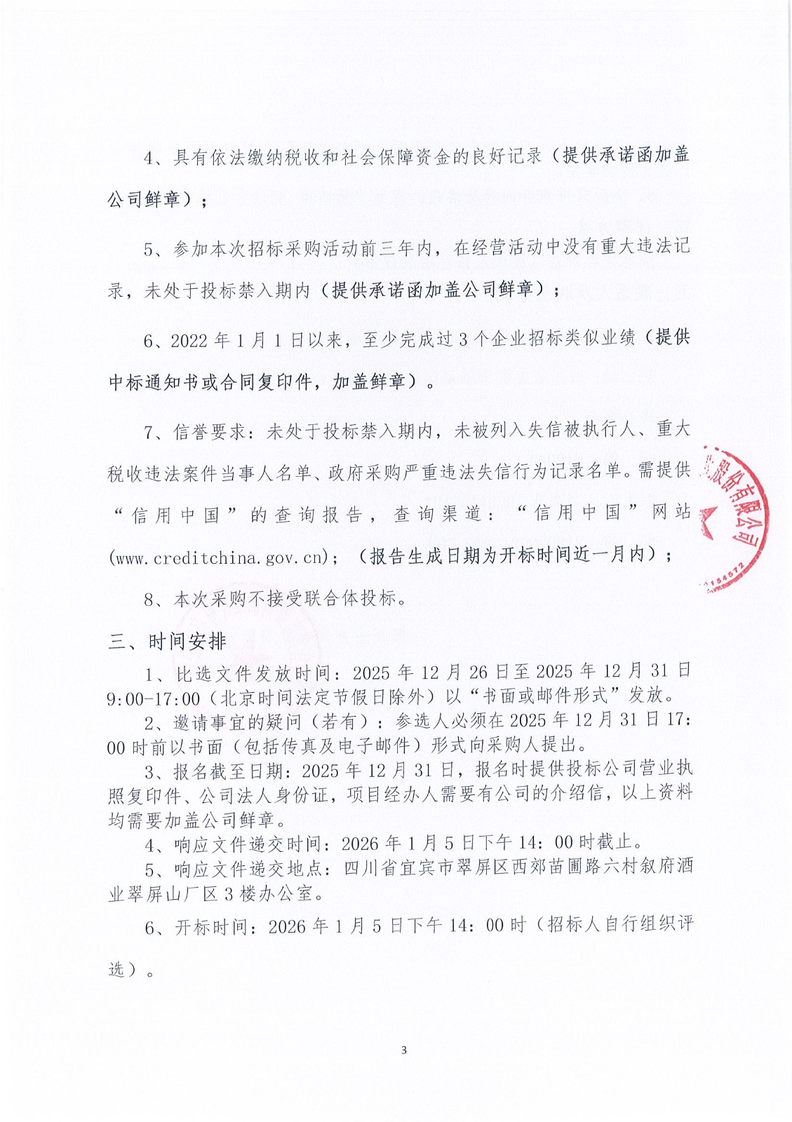 四川省宜宾市叙府酒业股份有限公司田字网格塑料托盘采购项目比选招标公告