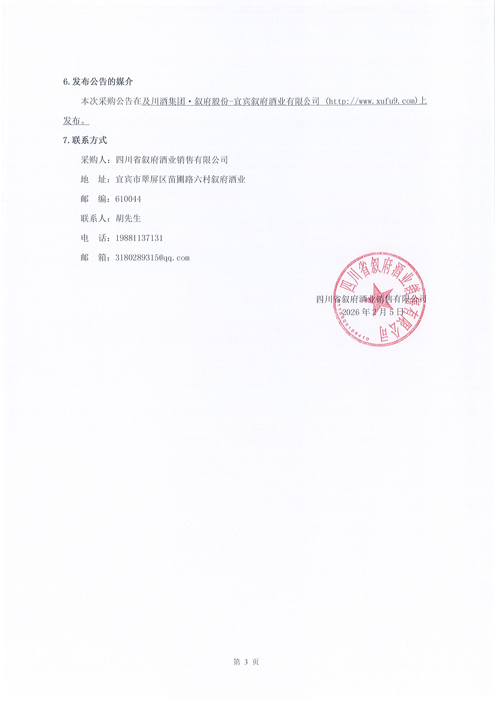四川省宜宾市叙府酒业股份有限公司物流运输服务采购项目比选结果公示公告