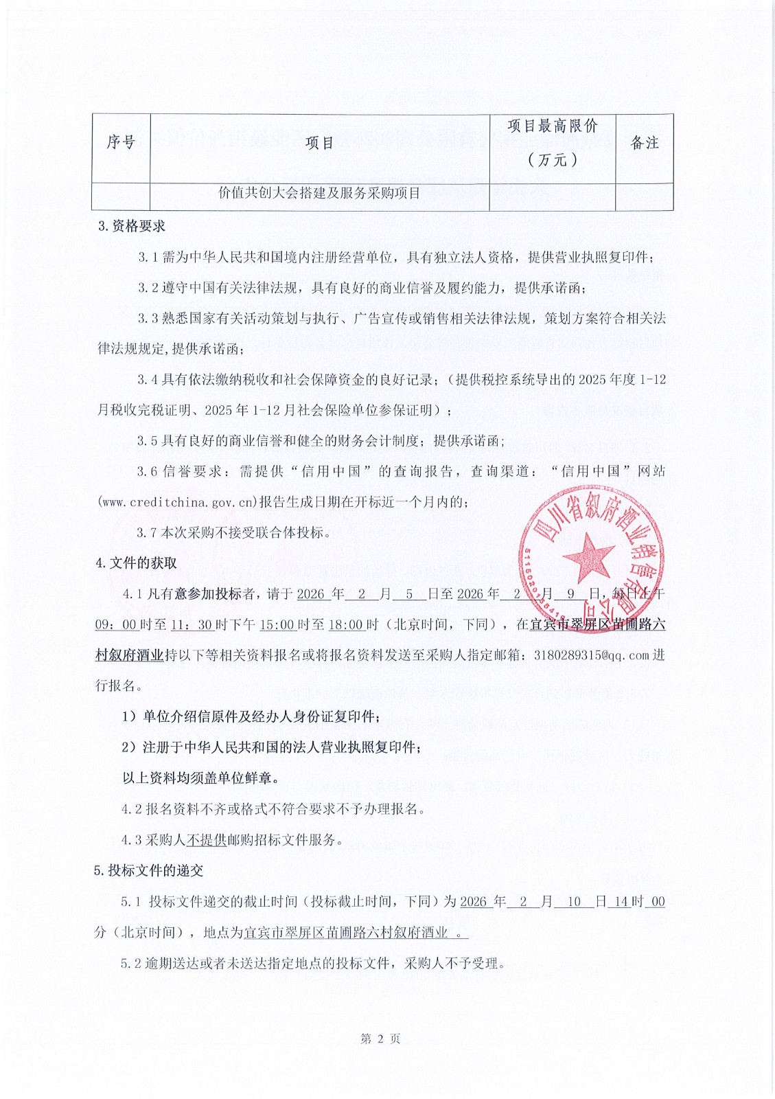四川省宜宾市叙府酒业股份有限公司电动四轮车竞争谈判采购项目