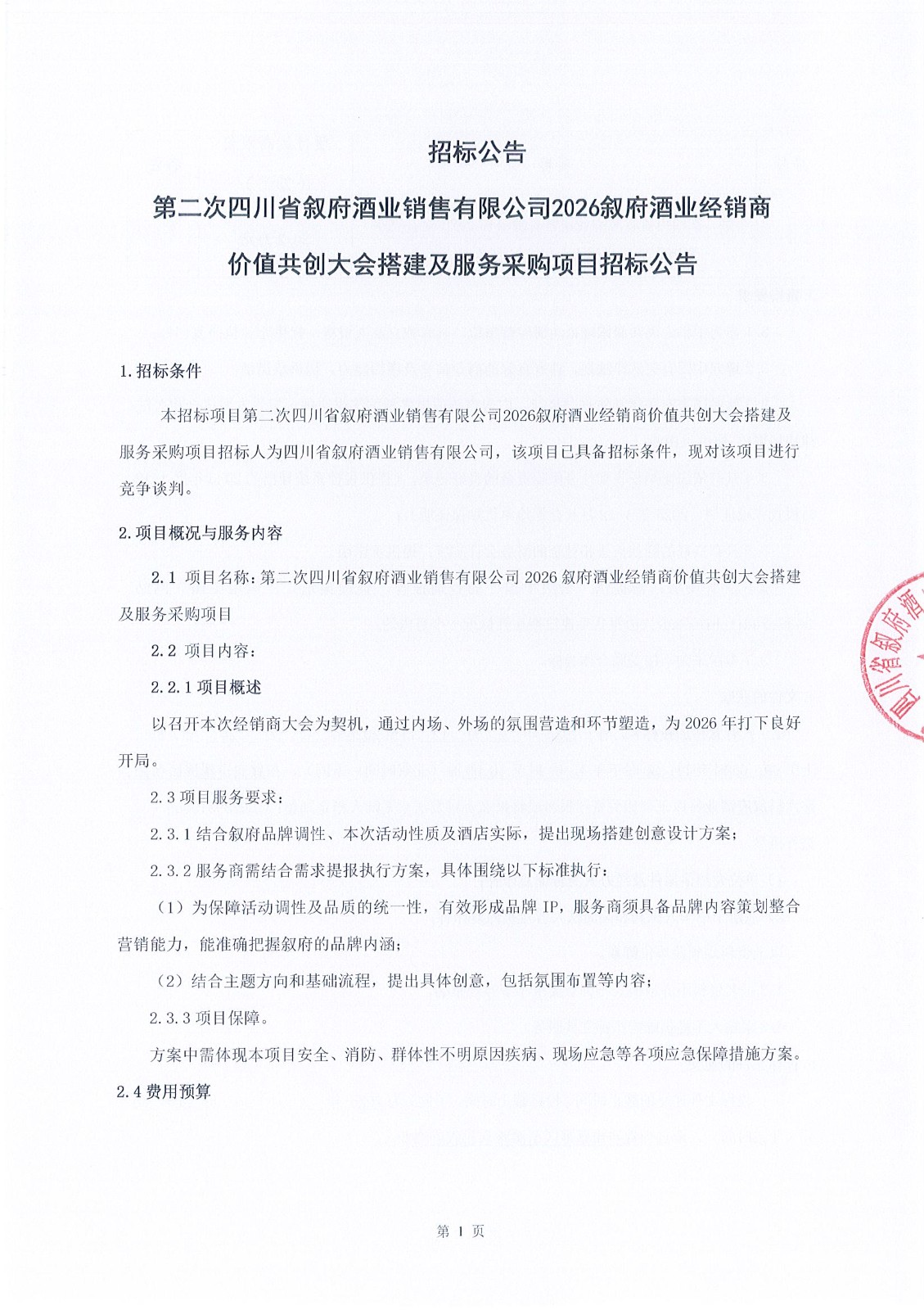 四川省宜宾市叙府酒业股份有限公司电动四轮车竞争谈判采购项目